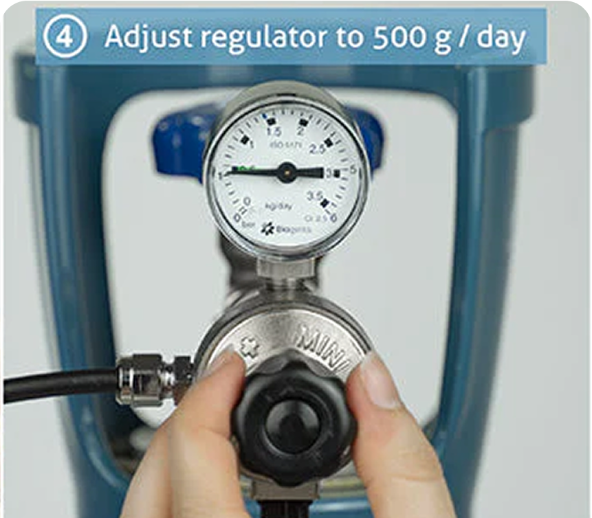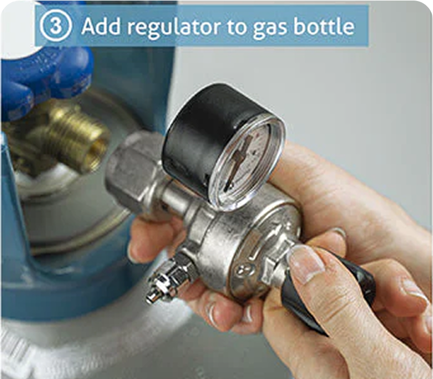 Note for the set-up of the pressure regulator onto the CO2 cylinder: Please make sure that you attach the small white sealing ring of the pressure reducing regulator for the CO2 cylinder before screwing it onto the cylinder. Otherwise, the CO2 can escape unhindered within a very short time. The sealing ring is located on a small hook directly on the pressure regulator.