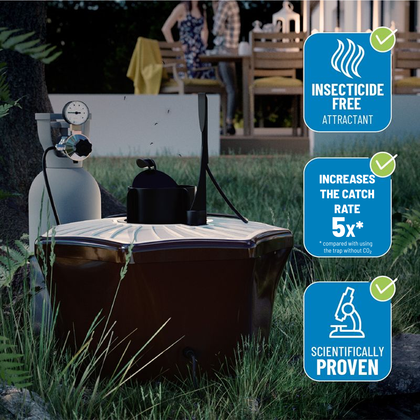 If you want to increase your outdoor catch rates even further or are you bothered by mosquitoes during the evenings, the best solution is provided by the BG-Mosquitaire with CO2. Our BG-Booster allows you to add CO2 to your BG-Mosquitaire from a CO2 cylinder. The addition of CO2 makes the BG-Mosquitaire even more attractive for a wide range of mosquitoes including flood water or dawn biting mosquitoes and can multiply the catch rate of tiger mosquitoes by 10.